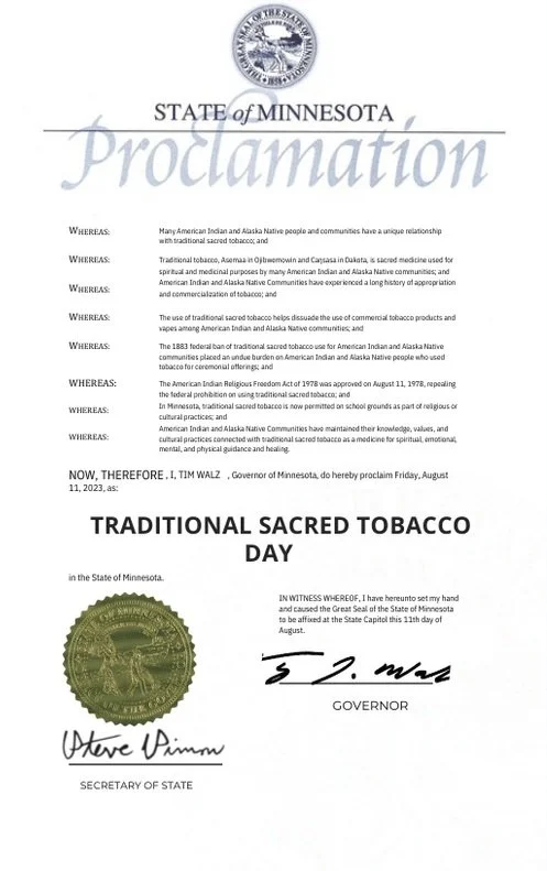 Suzanne Nash petitioned the Governor’s office to recognize August 11, 2023 as Traditional Sacred Tobacco Day.